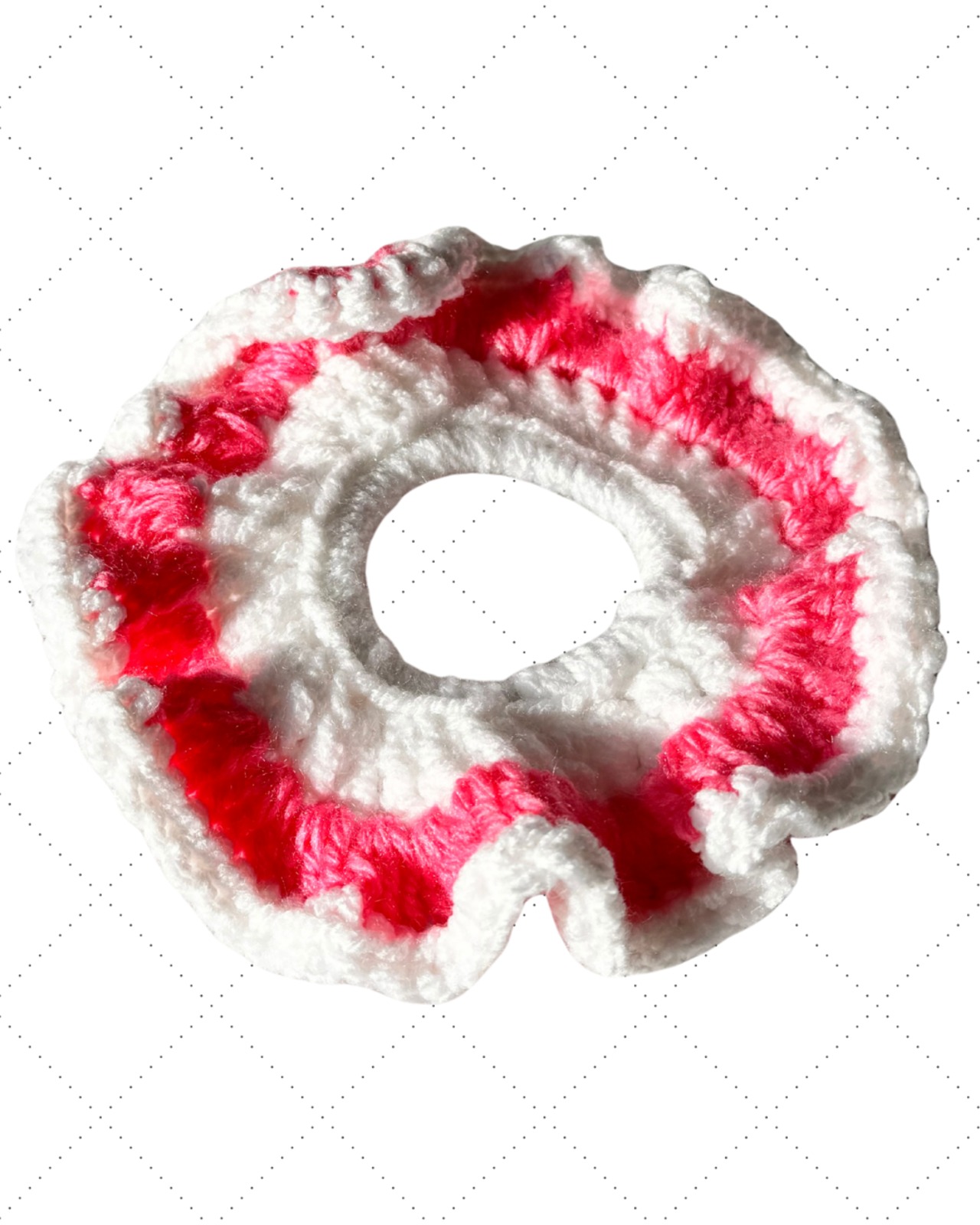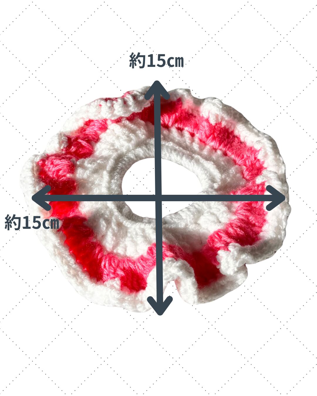ふわふわフリルの甘め手編みシュシュ(ピンク×白)