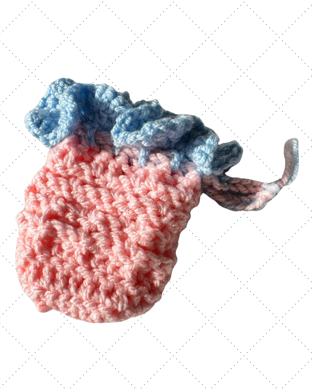 そんな想いに寄り添って、まるで『お布団』のような優しさで包み込むポーチを編み上げました。
