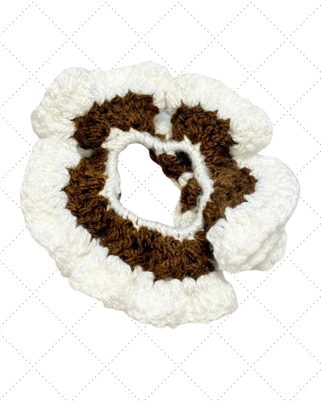 推しカラーがアクセント。ふんわりボリュームフリルシュシュ(ブラウン×ホワイト)